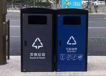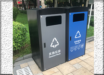 深圳市政道路240升兩分類箱體套桶桶罩這款垃圾桶是深圳福田市政道路的垃圾桶,現(xiàn)在深圳很多城區(qū)都在生產(chǎn)這款桶罩,方形組合式兩分類設(shè)計(jì),整體表面黑色噴涂噴塑,其他垃圾門板噴塑了灰色,可回收物噴塑了藍(lán)色,門板絲印了分類標(biāo)識,一門上下兩把鎖頭中間位置帶把手,內(nèi)筒是放置240塑料垃圾桶的內(nèi)膽所以叫“桶罩”。