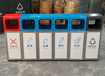 戶外幼兒園組合式彩色不銹鋼分類垃圾桶桶身使用了201#不銹鋼1.0厚的板材制造,雙面投口方形單筒組合式擺放分類設(shè)計(jì),表面采用了多色彩噴塑可以按照用戶需要烤漆,可絲網(wǎng)印刷玻璃、金屬、塑料、紙類、其他垃圾、有害垃圾等最新國標(biāo)分類標(biāo)識,取出頂部投口可取出內(nèi)置的內(nèi)筒方便清理廢物。