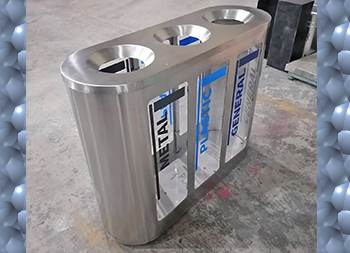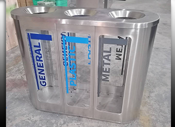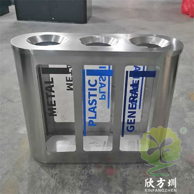 室內(nèi)出口地鐵站透明不銹鋼分類垃圾桶可以選用201或者304不銹鋼板制作,立式橢圓形連體三分類設(shè)計,透明查探區(qū)域可以采用高清的亞克力板或者鋼化玻璃制造,透明板可以絲印中英文文字或者做貼紙,投口圓錐形平滑投遞廢物不易傷手,表面可以噴粉和電鍍支持定制。