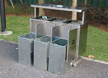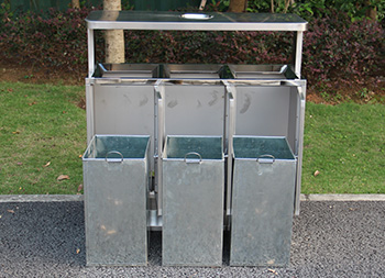 出口戶外三分類不銹鋼垃圾桶制作精良,戶外方形三分類設(shè)計,適合擺放在戶外物業(yè)小區(qū)、學(xué)校、寫字樓、醫(yī)院、商場等等,注重產(chǎn)品細(xì)節(jié)部位處理堅固耐用,安全無利口,不傷手,201不銹鋼外筒,鍍鋅板內(nèi)筒 ,便于垃圾清倒。