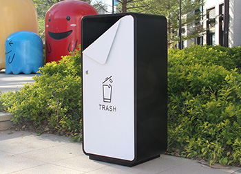 出口貿(mào)易方形噴塑不銹鋼垃圾桶采用了201不銹鋼板制造而成,箱體方形單筒設(shè)計,桶身表面噴塑黑色,桶蓋門板噴塑白色,門板中上方油墨絲網(wǎng)印刷國外的英文回收標(biāo)識,創(chuàng)意的折彎敞面三角形雙面投口設(shè)計,雙面左上方的三角鑰匙可以開門取出內(nèi)膽,欣方圳專業(yè)定制出口貿(mào)易室內(nèi)外分類垃圾桶、單筒。