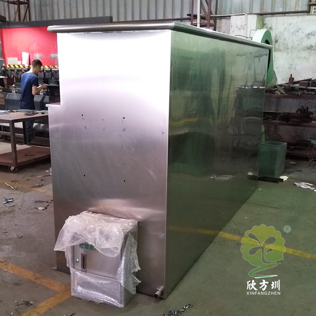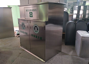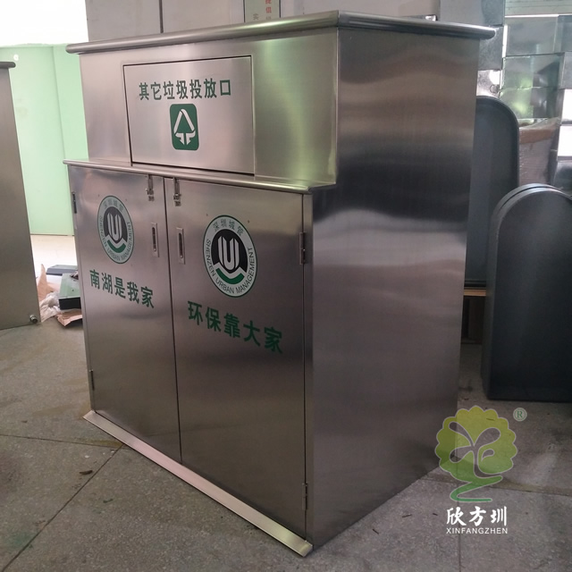 大型戶(hù)外不銹鋼回收箱垃圾房是采用201#不銹鋼本色優(yōu)質(zhì)不銹鋼板機(jī)器折彎組裝焊接打磨等一系列工藝成型,方形垃圾房可以放著4個(gè)240升的塑料垃圾桶在垃圾房里面,搖蓋式開(kāi)蓋設(shè)計(jì)可以良好的防止異味流出,支持定制絲印分類(lèi)標(biāo)識(shí)及企業(yè)logo名稱(chēng)。
