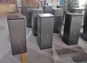 室內(nèi)電鍍腐刻單筒不銹鋼分類垃圾桶可以采用201/304不銹鋼板制造,兩個(gè)款式一款是單筒一款是兩分類方形帶搖擺蓋設(shè)計(jì),雙筒用8*8mm方通相連,門板腐刻印花工藝,不銹鋼金屬表面做了電鍍黑鈦和香檳金工藝,正面抽拉式導(dǎo)軌抽可以取出內(nèi)膽,門板中心位置絲網(wǎng)印刷最新中英文國標(biāo)分類標(biāo)識(shí)或人頭標(biāo)。