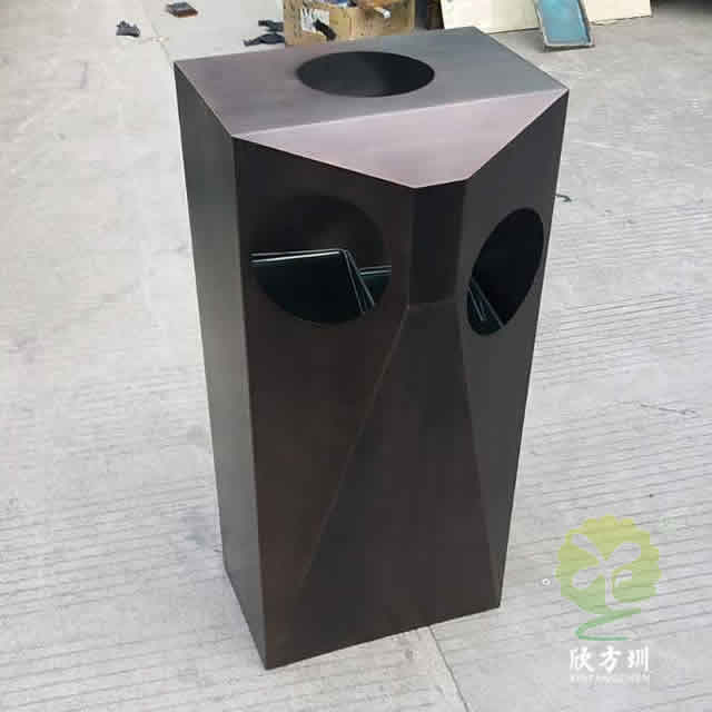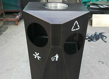 室內(nèi)電梯口不銹鋼分類垃圾桶采用了優(yōu)質(zhì)耐腐蝕的304#不銹鋼板制作而成,這款果皮箱雙分類圓形投口設計,頂部可以選擇性需不需要煙灰盅,桶身正面絲印了其他垃圾、可回收垃圾分類的圖標,表面可以選擇烤漆、電鍍或者噴塑,顏色有白色、黑色、紅色等供用戶選擇。