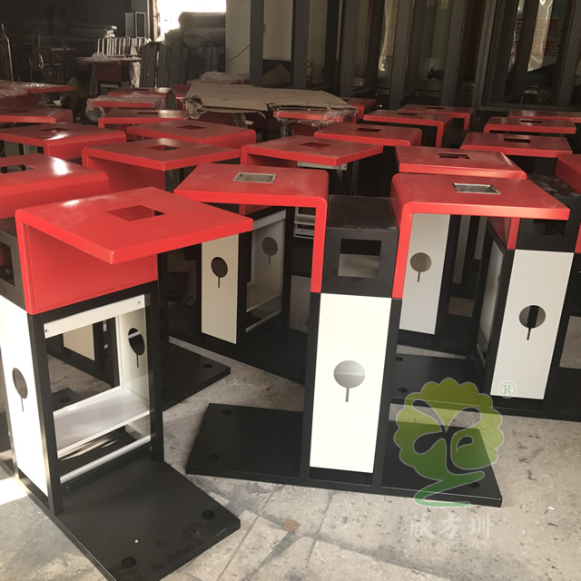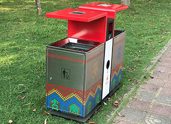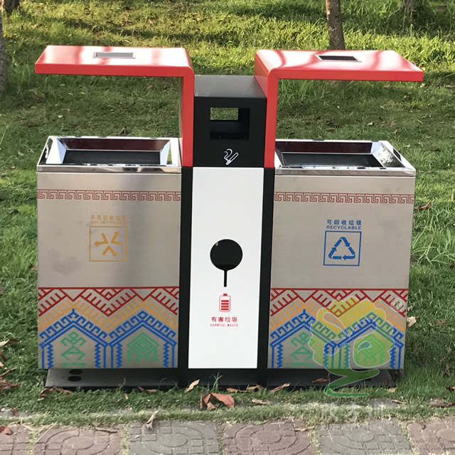 公園UV打印不銹鋼兩分類垃圾箱采用304#優(yōu)質(zhì)不銹鋼材料模壓成型;桶身彩色部分采用了新型的UV打印技術(shù)印刷上去的,雙面有害垃圾和煙灰盅投口中國風(fēng)設(shè)計(jì)不僅僅耐看;內(nèi)筒采用鍍鋅板,堅(jiān)固耐用,不易破損;耐火安全,抗高低溫,適合各種惡劣氣候條件。
