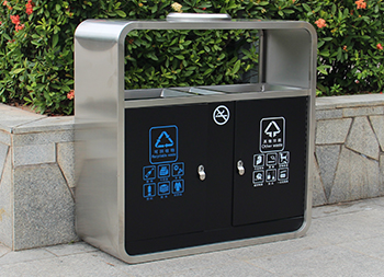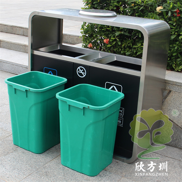 廣州戶外市政街道不銹鋼分類垃圾桶制作精良,不銹鋼本色戶外連體兩分類方形垃圾桶設計,適合擺放在室內(nèi)物業(yè)小區(qū)、市政街道、廣場、工業(yè)區(qū)道路或公園景區(qū)等等,注重產(chǎn)品細節(jié)部位處理堅固耐用,安全無利口,不傷手,框架201不銹鋼外筒,不銹鋼內(nèi)筒也可以選擇鍍鋅板、塑料、玻璃鋼等等,便于垃圾清倒。