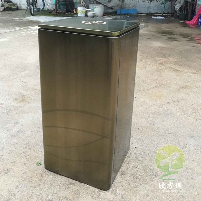 仿青古銅色方形不銹鋼果皮箱這款垃圾桶制作精良,戶外單筒電鍍仿青古銅色方形設(shè)計,適合擺放在物業(yè)小區(qū)、購物商城、旅游景區(qū)電梯口等等,注重產(chǎn)品細(xì)節(jié)部位處理堅固耐用,安全無利口,不傷手,304不銹鋼外筒,鍍鋅板內(nèi)筒 ,便于垃圾清倒。