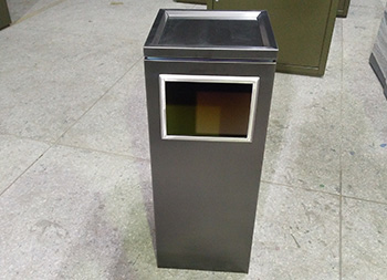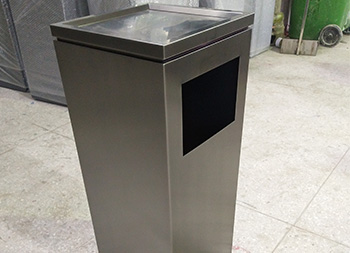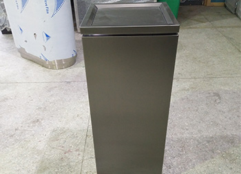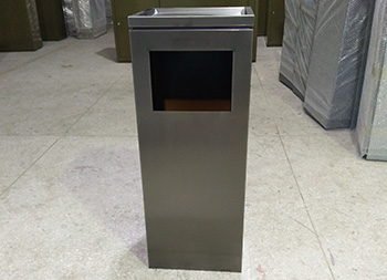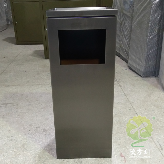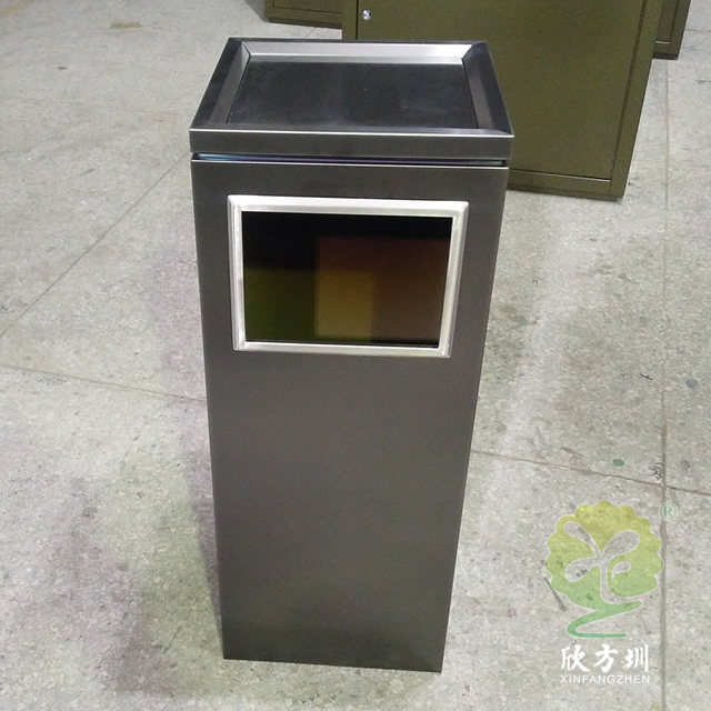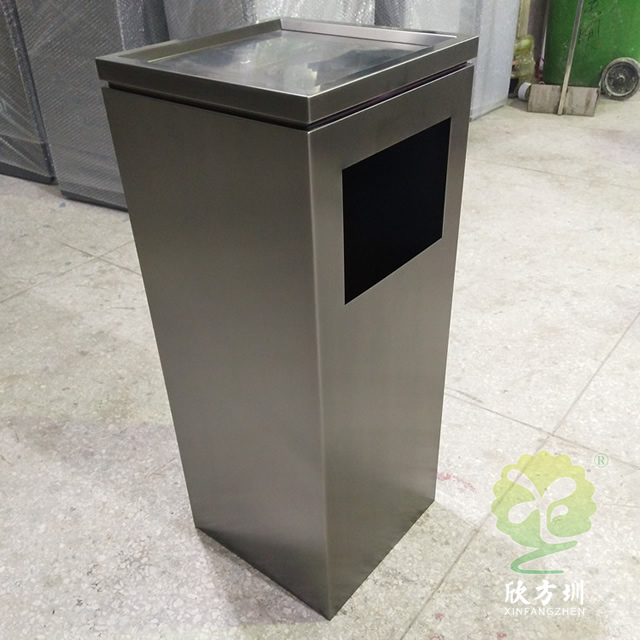 室內(nèi)電鍍黑鈦不銹鋼果皮箱采用了201#不銹鋼板1.0mm厚的板材制作,電鍍黑鈦工藝方形設(shè)計,欣方圳支持304不銹鋼板定制或者電鍍其他顏色以及烤漆,規(guī)格大小都可以根據(jù)客戶,頂部帶凹方形的煙灰盅可以到入滅煙砂提供滅煙使用,拿開頂部的垃圾桶蓋子可以方便取出里面的內(nèi)筒,方便清潔工人處理垃圾桶內(nèi)的垃圾。