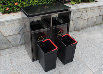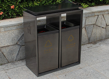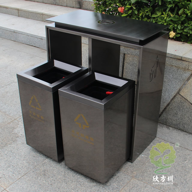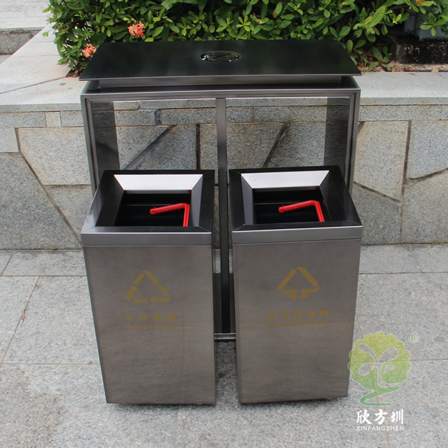 電鍍黑鈦雙分類不銹鋼垃圾桶制作精良,雙分類方形搖蓋式高檔設(shè)計(jì),適合擺放在物業(yè)小區(qū)、車站、醫(yī)院、商場(chǎng)等等,注重產(chǎn)品細(xì)節(jié)部位處理堅(jiān)固耐用,安全無(wú)利口,不傷手,201不銹鋼外筒,鍍鋅板內(nèi)筒 ,便于垃圾清倒。