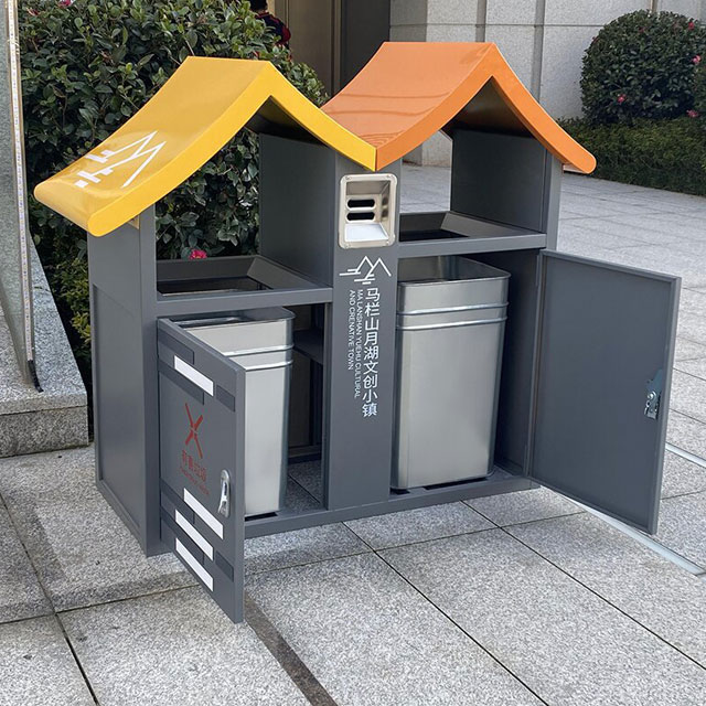 環(huán)衛(wèi)屋形噴粉不銹鋼分類垃圾桶制作精良,不銹鋼本色戶外連體兩分類方形垃圾桶設(shè)計,適合擺放在室內(nèi)物業(yè)小區(qū)、市政街道、廣場、工業(yè)區(qū)道路或公園景區(qū)等等,注重產(chǎn)品細節(jié)部位處理堅固耐用,安全無利口,不傷手,框架201不銹鋼外筒,不銹鋼內(nèi)筒也可以選擇鍍鋅板、塑料、玻璃鋼等等,便于垃圾清倒。