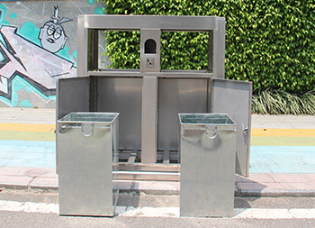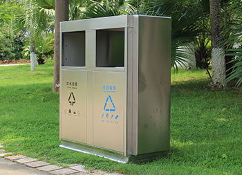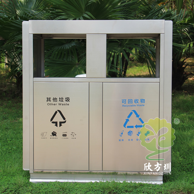 戶外公園雙分類不銹鋼垃圾箱采用201#不銹鋼板制作而成,這款垃圾桶設(shè)計(jì)簡(jiǎn)潔大氣啞光其他垃圾、可回收垃圾兩分類設(shè)計(jì),兩邊側(cè)面中心可以開煙灰盅或者有害垃圾投口,表面處理電鍍、烤漆多選擇還可以定制絲印企業(yè)logo名稱。