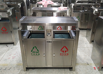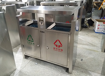 戶(hù)外街道兩分類(lèi)不銹鋼垃圾箱制作精良,雙分類(lèi)設(shè)計(jì),注重產(chǎn)品細(xì)節(jié)部位處理堅(jiān)固耐用,安全無(wú)利口,不傷手,201不銹鋼外筒,鍍鋅板內(nèi)筒 ,便于垃圾清倒。