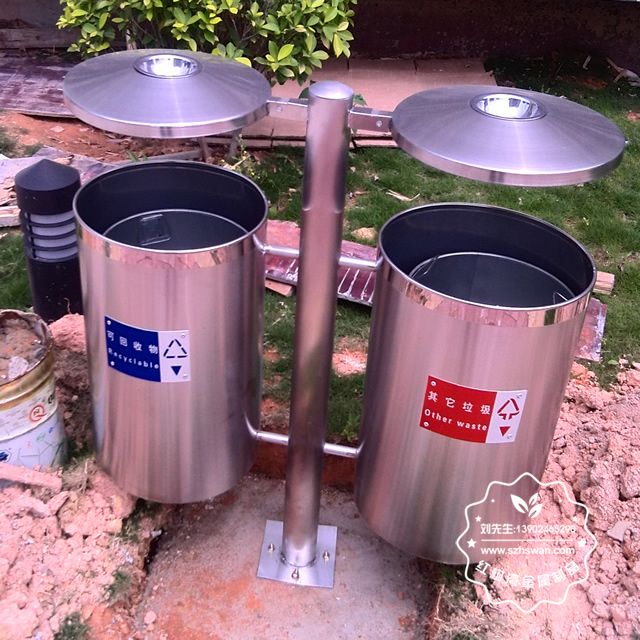 戶外圓柱形不銹鋼分類垃圾桶制作精良,圓柱形防盜雙分類設(shè)計(jì),注重產(chǎn)品細(xì)節(jié)部位處理堅(jiān)固耐用,安全無利口,不傷手,201不銹鋼外筒,配備圓柱形鍍鋅板內(nèi)筒,或者選擇:不銹鋼、塑料、玻璃鋼等內(nèi)筒制作,便于垃圾清倒;適合擺放場景:街道、城中村、工業(yè)區(qū)、物業(yè)小區(qū)、社區(qū)等等。