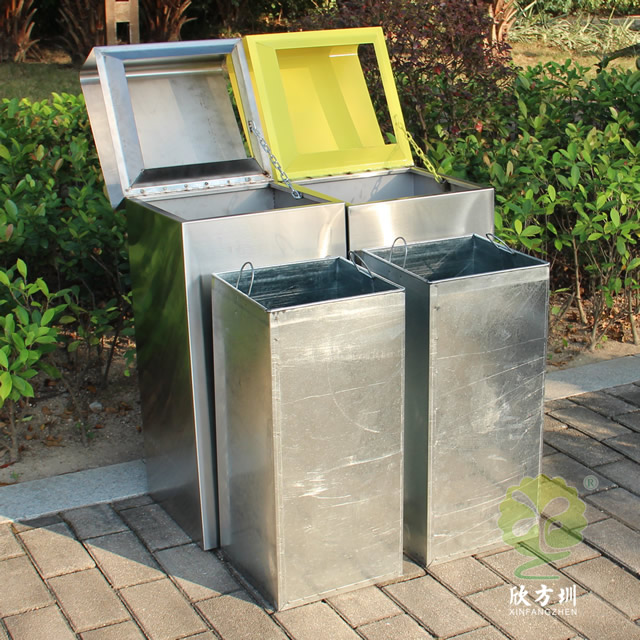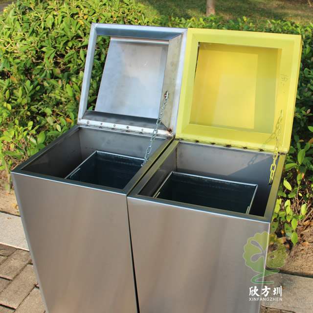 市政街道不銹鋼分類垃圾箱制作精良,戶外雙分類方形組合式高檔設計,適合擺放在市政街道、物業(yè)小區(qū)、車站、醫(yī)院、商場等等,注重產品細節(jié)部位處理堅固耐用,安全無利口,不傷手,201不銹鋼外筒,鍍鋅板內筒 ,便于垃圾清倒。