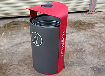 精品戶外環(huán)保不銹鋼垃圾桶采用了201的不銹鋼板制作而成,采用了橢圓形單筒設(shè)計(jì),框架采用了噴涂噴塑紅色外桶噴塑了淡黑色,外桶中上位置絲印了人頭標(biāo),兩根立柱支撐桿絲印了英文的物業(yè)名稱,頂部中心位置帶一個(gè)淡黑色的圓形煙灰盅,外桶中間旁邊帶一個(gè)三角鑰匙開可以取出里面的內(nèi)筒。