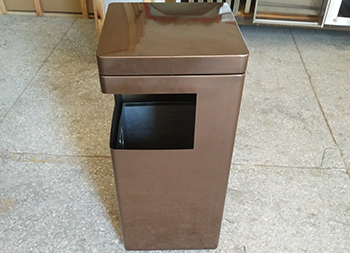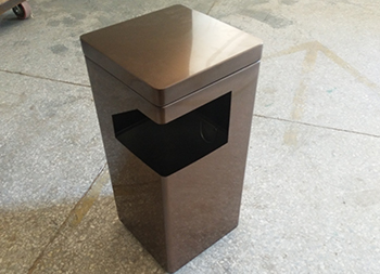 景區(qū)電鍍方形不銹鋼垃圾桶制作精良,方形電鍍咖啡色室內戶外設計,注重產品細節(jié)部位處理堅固耐用,安全無利口,不傷手,201不銹鋼外筒,配備方形鍍鋅板內筒,或者選擇:不銹鋼、塑料、玻璃鋼等內筒制作,便于垃圾清倒;適合擺放場景:景區(qū)、社區(qū)、小區(qū)物業(yè)、寫字樓、醫(yī)院、學校室內等等。