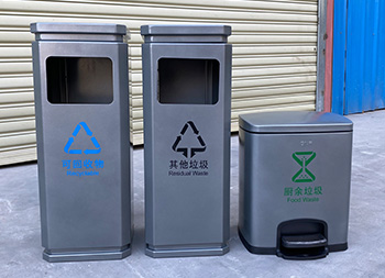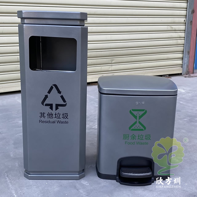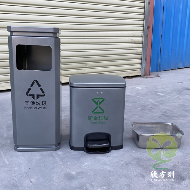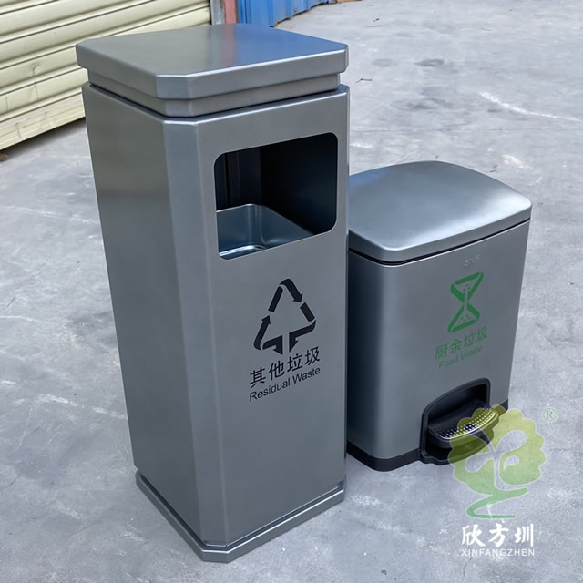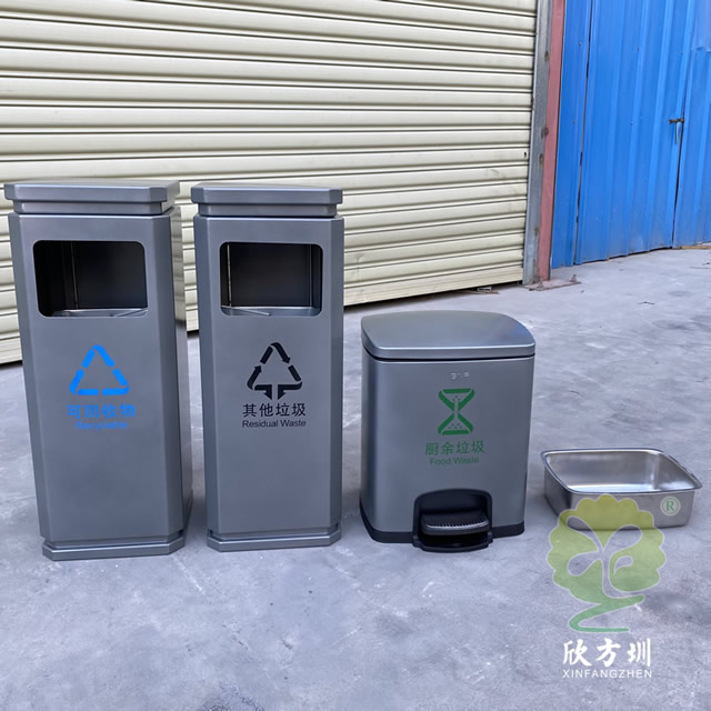 室內(nèi)噴塑不銹鋼分類垃圾桶是我們欣方圳廠家一個(gè)客戶定制的款式,由我們制造生產(chǎn)的一個(gè)樣品,方形組合式分類設(shè)計(jì),方形投口開口,桶身噴塑了啞光灰色,可以絲印國標(biāo)的分類標(biāo)識(shí),可回收物配備了小型的腳踏式垃圾桶,可以根據(jù)客戶的擺放情況以及材質(zhì)顏色專業(yè)定制。