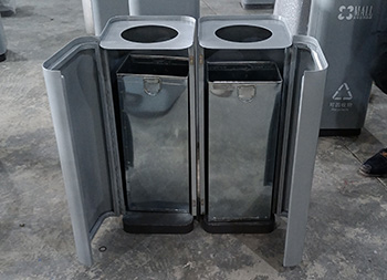 室內(nèi)立式方形不銹鋼分類垃圾桶這款垃圾桶制作精良,不銹鋼噴塑組合式分類室內(nèi)垃圾桶設(shè)計(jì),適合擺放在購物商城、機(jī)場車站、物業(yè)小區(qū)、市政街道、旅游景區(qū)等等,注重產(chǎn)品細(xì)節(jié)部位處理堅(jiān)固耐用,安全無利口,不傷手,整體框架201不銹鋼外筒,鍍鋅板內(nèi)筒也可以選擇塑料、玻璃鋼、鍍鋅板、不銹鋼等等,便于垃圾清倒。