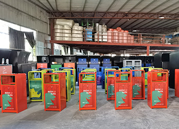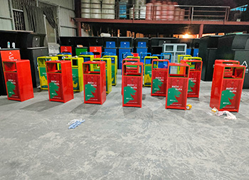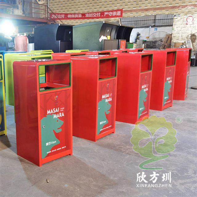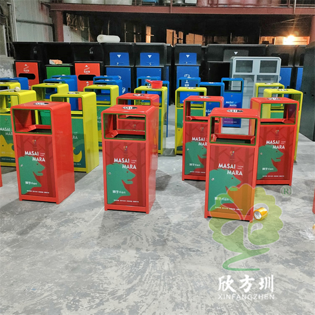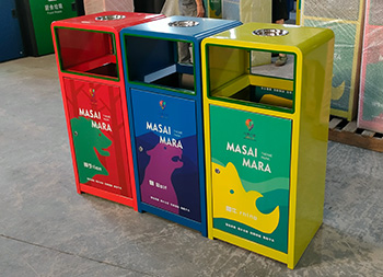 戶外三色加厚不銹鋼分類垃圾桶采用了2.00mm厚304#不銹鋼板制造而成,一般常規(guī)的不銹鋼板厚度我們廠家都會使用1.00mm厚,室外組合式方形雙面投口設(shè)計,表面采用了三色噴涂噴塑上色,垃圾桶門板應(yīng)用了UV打印抽象卡通圖案,頂部中心位置帶碗形煙灰盅,門板左中間帶三角鑰匙鎖頭,我們廠家支持板材、厚度、表面工藝定制。