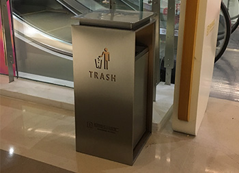 商場(chǎng)電梯口方形不銹鋼垃圾桶長(zhǎng)330mm寬330mm高760mm可以選用優(yōu)質(zhì)的304、201等型號(hào)的不銹鋼板制作,整體方形單筒抽屜式設(shè)計(jì),logo企業(yè)名稱采用腐刻工藝來(lái)制作,這款支持定制可以做本色、電鍍土豪金、玫瑰金、烤漆等等顏色,這款垃圾桶外觀大氣時(shí)尚。