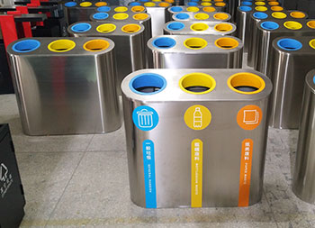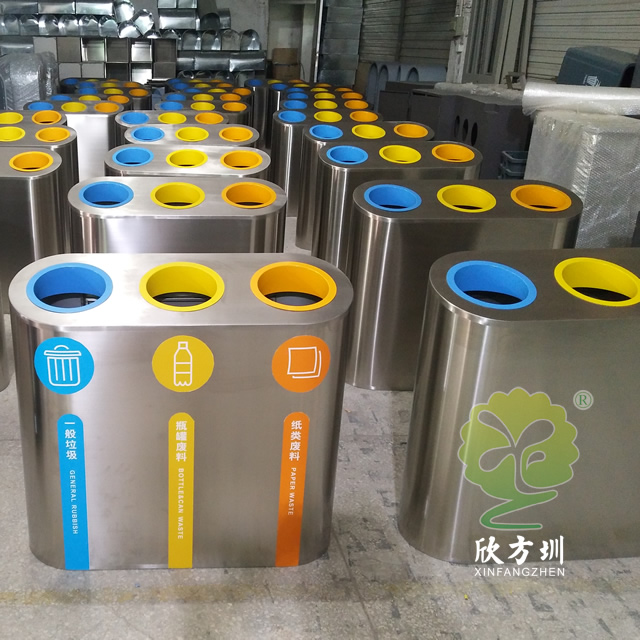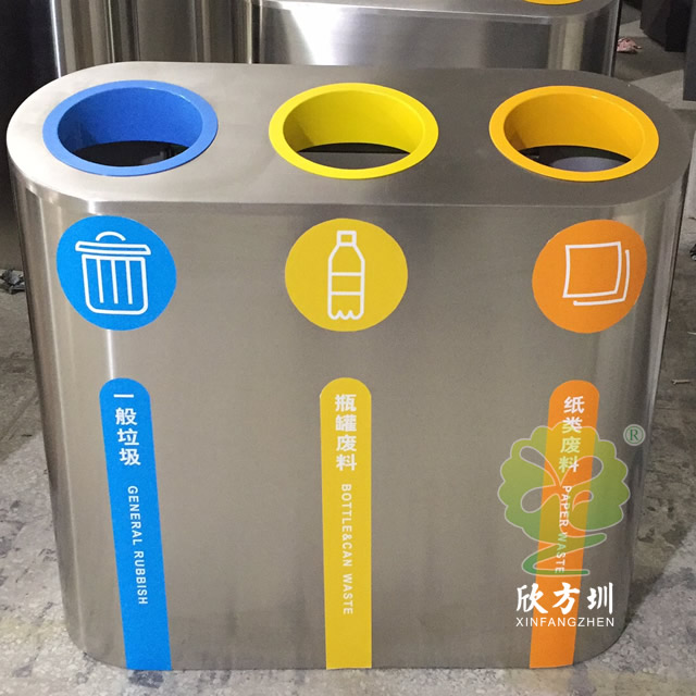 商場立式三分類不銹鋼垃圾桶采用201不銹鋼制造而成,立式直投口包涵一般垃圾、瓶罐廢料、紙類廢料三分類,垃圾桶分類標(biāo)識是三色貼紙,投口邊圓形設(shè)計不易傷手,適合擺放在室內(nèi)的商場、機場、候車室等場景。
