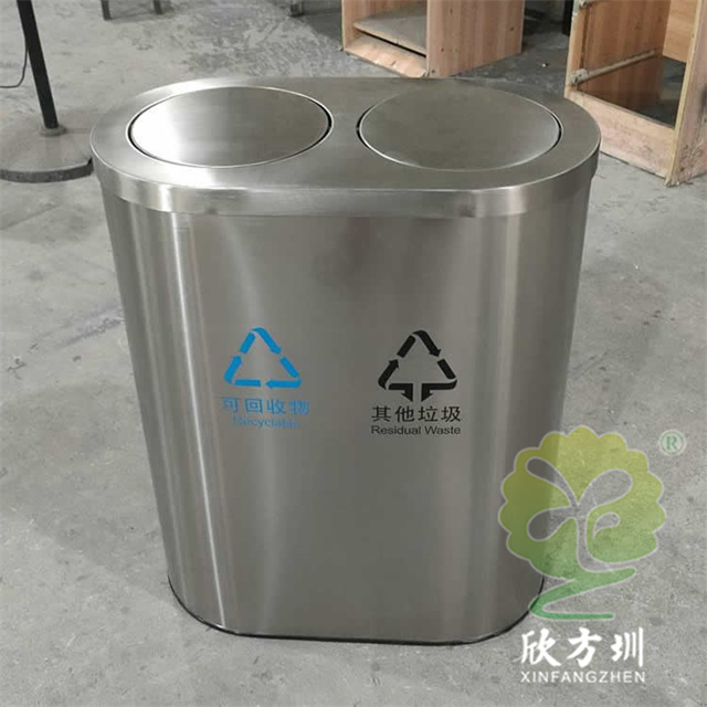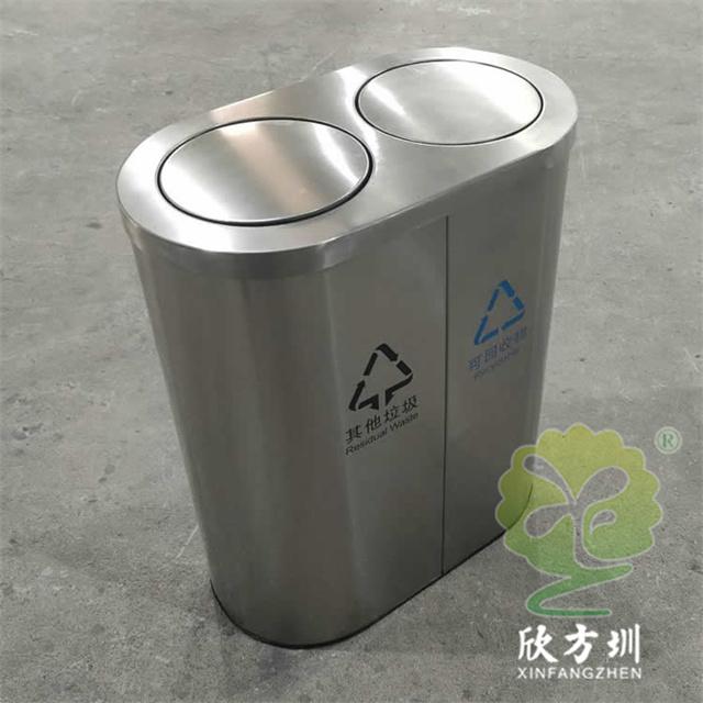 室內(nèi)商用帶蓋兩連體不銹鋼分類垃圾桶這款垃圾桶制作精良,橢圓形不銹鋼分類室內(nèi)垃圾桶設(shè)計,適合擺放在車站、學(xué)校校園、購物商場、寫字樓、醫(yī)院、酒店賓館等等,注重產(chǎn)品細節(jié)部位處理堅固耐用,安全無利口,不傷手,整體框架201不銹鋼外筒,鍍鋅板內(nèi)筒本色0.4mm厚度也可以選擇塑料、玻璃鋼、鍍鋅板、不銹鋼等等,便于垃圾清倒。