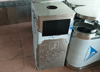室內(nèi)方形蝕刻土豪金不銹鋼垃圾桶是一款高檔的果皮箱,采用了耐腐蝕的304不銹鋼板制造而成,采用了電鍍土豪金蝕刻表面處理工藝,立式方形單面投口設(shè)計(jì),桶身表面人頭標(biāo)和創(chuàng)意圖案采用了蝕刻工藝,頂部中心位置含一個(gè)圓碗形的煙灰盅,外桶表面做了防指紋處理,我們生產(chǎn)廠家支持。