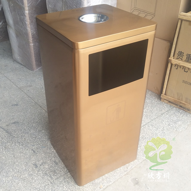室內(nèi)方形蝕刻土豪金不銹鋼垃圾桶這款垃圾桶制作精良,室內(nèi)單筒電鍍土豪金蝕刻設(shè)計(jì),適合擺放在物業(yè)小區(qū)、市政街道、旅游景區(qū)等等,注重產(chǎn)品細(xì)節(jié)部位處理堅(jiān)固耐用,安全無利口,不傷手,304不銹鋼外筒,鍍鋅板內(nèi)筒 ,便于垃圾清倒。