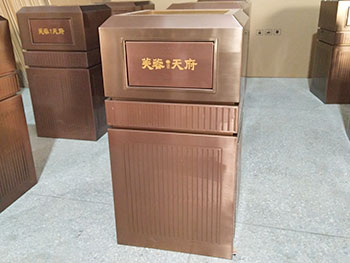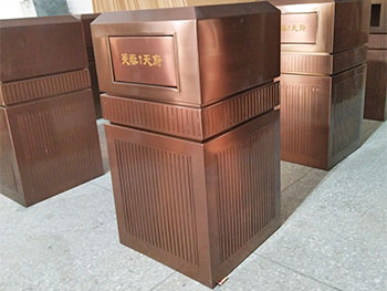室內(nèi)高檔電鍍古銅色不銹鋼垃圾桶可選用201#,202#,304#不同型號的不銹鋼材質(zhì),生產(chǎn)的成品價格也會不同,不同型號材質(zhì)表面加工不同抗腐蝕能力也是有區(qū)別的,腐蝕環(huán)境要求光滑的表面是因為表面光滑不容易積垢,污垢的沉積會使不銹鋼生銹甚至造成腐蝕。表面還可做防指紋處理,指紋手印雖然可以擦掉,但影響美觀,所以可根據(jù)客戶需求選用防指紋處理。若覺得不銹鋼本色比較單調(diào),那么你可選擇產(chǎn)品表面電鍍工藝,鈦金、玫瑰金等顏色高檔美觀,可定制各種色彩和各種不銹鋼垃圾桶款式。