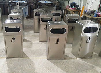 室內(nèi)商場(chǎng)方形不銹鋼果皮箱采用201#不銹鋼板折彎焊接組裝而成,金屬表面處理可以選擇啞光、鏡光、電鍍、烤漆等改變表面色澤,內(nèi)筒配備是鍍鋅板內(nèi)筒,外觀方形雙面投口頂部帶煙灰盅設(shè)計(jì),絲網(wǎng)印刷了垃圾標(biāo)識(shí),這款垃圾桶適合擺放室內(nèi)商場(chǎng)、酒店、公寓、小區(qū)等電梯口旁邊。
