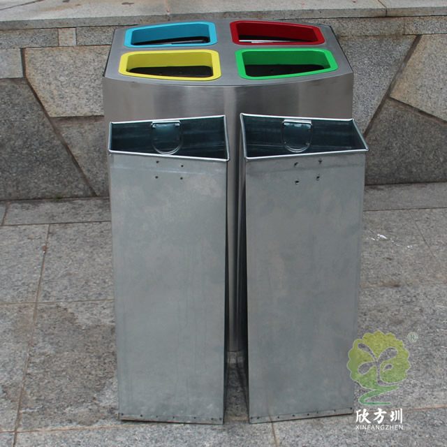 室內(nèi)立式不銹鋼四分類垃圾桶制作精良,四分類立式直投口方形高檔設(shè)計(jì),適合擺放在物業(yè)小區(qū)、車站、醫(yī)院、商場(chǎng)等等,注重產(chǎn)品細(xì)節(jié)部位處理堅(jiān)固耐用,安全無利口,不傷手,201不銹鋼外筒,鍍鋅板內(nèi)筒 ,便于垃圾清倒。