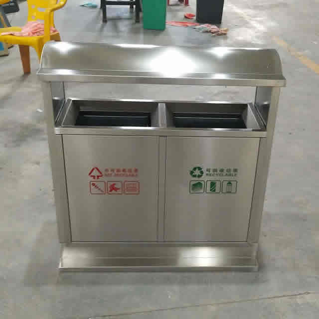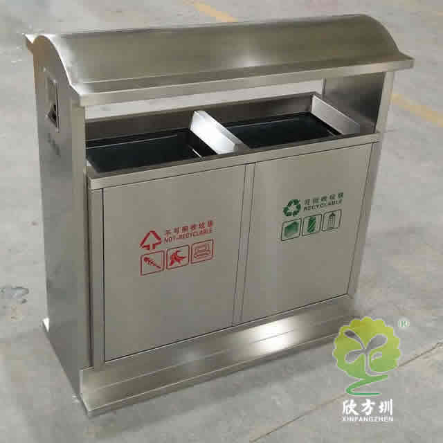 戶外社區(qū)雙分類不銹鋼垃圾箱這款垃圾桶制作精良,戶外兩分類組合式資源回收箱設(shè)計,適合擺放在物業(yè)小區(qū)、市政街道、旅游景區(qū)等等,注重產(chǎn)品細(xì)節(jié)部位處理堅固耐用,安全無利口,不傷手,201不銹鋼外筒,鍍鋅板內(nèi)筒 ,便于垃圾清倒。