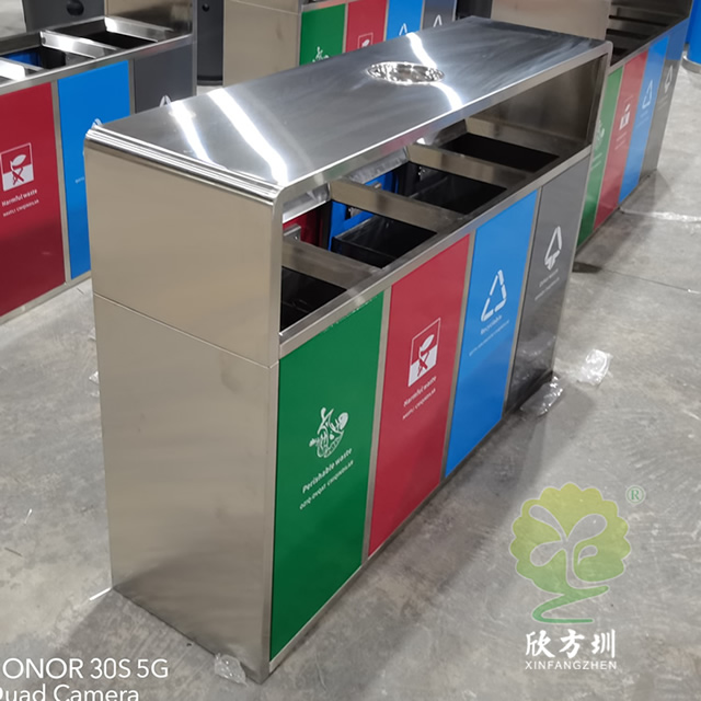 城市街道四色不銹鋼分類垃圾桶制作精良,戶外四分類方形設計,注重產(chǎn)品細節(jié)部位處理堅固耐用,安全無利口,不傷手,304#或201不銹鋼外筒,方形鍍鋅板內(nèi)筒,或者選擇:不銹鋼、塑料、玻璃鋼等內(nèi)筒制作,便于垃圾清倒;適合擺放戶外場景:城市街道、物業(yè)小區(qū)、學校醫(yī)院、公園景點、廣場、工業(yè)區(qū)等等。