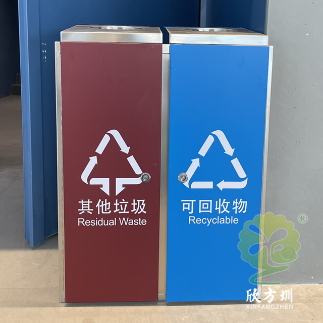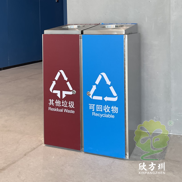 文體局室內(nèi)不銹鋼分類垃圾桶是深圳市龍華區(qū)文化廣電旅游體育局的一位采購在我們工廠定做一款桶,外桶材質(zhì)采用了201#不銹鋼板制造,方形桶圓形直投口設(shè)計(jì),可以組合式擺放兩分類或者三分類四分類,垃圾桶門板采用四色圖紙擁有國標(biāo)最新分類標(biāo)識(shí),門板三角鑰匙可開門取出內(nèi)置的內(nèi)膽。