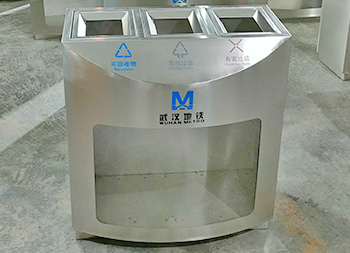 湖北武漢透明三分類不銹鋼垃圾桶采用了優(yōu)質(zhì)的201不銹鋼1.0mm厚的板材制造,透明部分采用了3.0mm厚的亞克力板,三分類方形設(shè)計(jì),這款垃圾桶不含內(nèi)筒,直接套用透明塑料垃圾袋使用,絲網(wǎng)印刷了可回收物、其他垃圾、有害垃圾以及武漢地鐵logo標(biāo)識(shí)。
