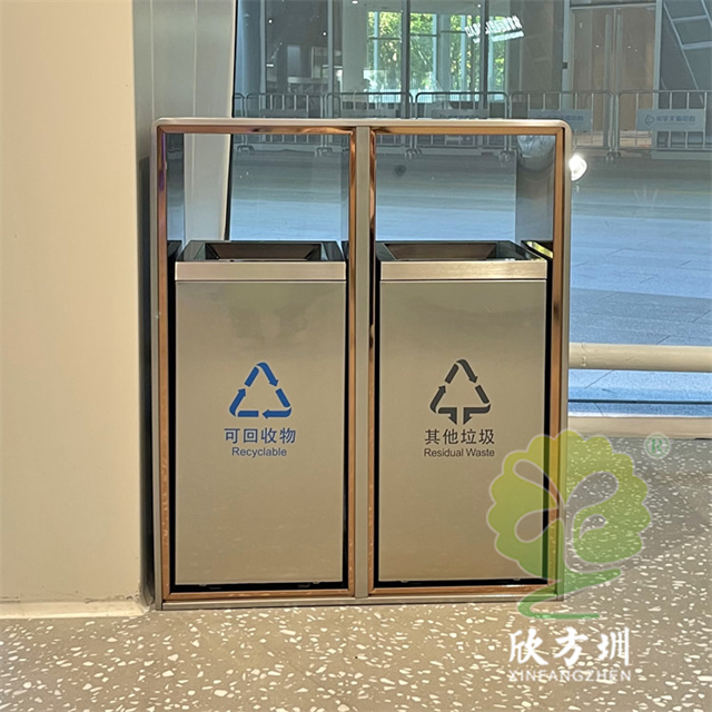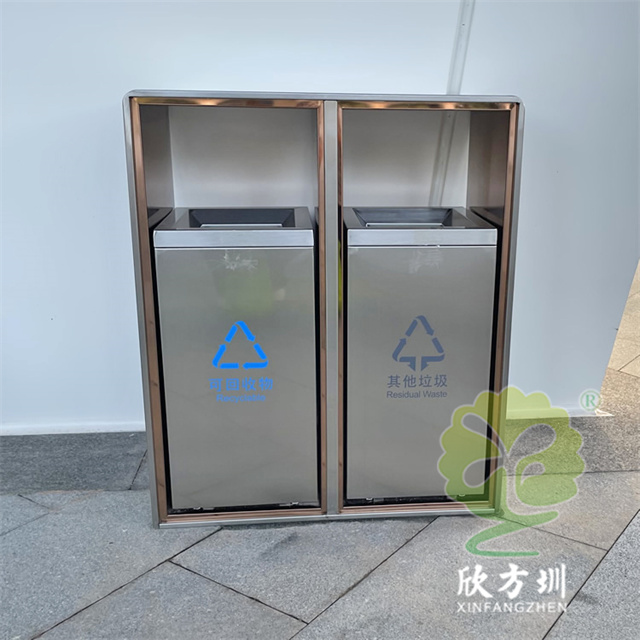 戶外電鍍香檳金不銹鋼分類垃圾桶這款垃圾桶制作精良,戶外兩連體分類方形不銹鋼本色啞光滑軌設(shè)計(jì),適合擺放在城市廣場、市政街道、物業(yè)小區(qū)、旅游景區(qū)等等,注重產(chǎn)品細(xì)節(jié)部位處理堅(jiān)固耐用,安全無利口,不傷手,201不銹鋼外筒,鍍鋅板內(nèi)筒 , 可以定制不銹鋼內(nèi)筒、玻璃鋼內(nèi)筒、或者塑料內(nèi)筒等,便于垃圾清倒。