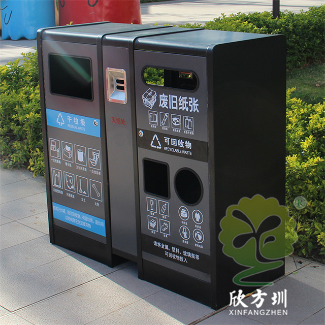 室內(nèi)寫字樓不銹鋼分類垃圾箱這款垃圾桶制作精良,噴塑資源回收分類垃圾桶設(shè)計(jì),適合擺放在室內(nèi)寫字樓、購(gòu)物商城、酒店等等,注重產(chǎn)品細(xì)節(jié)部位處理堅(jiān)固耐用,安全無(wú)利口,不傷手,框架201不銹鋼外筒,鍍鋅板內(nèi)筒也可以選擇塑料、不銹鋼、玻璃鋼等等,便于垃圾清倒。