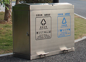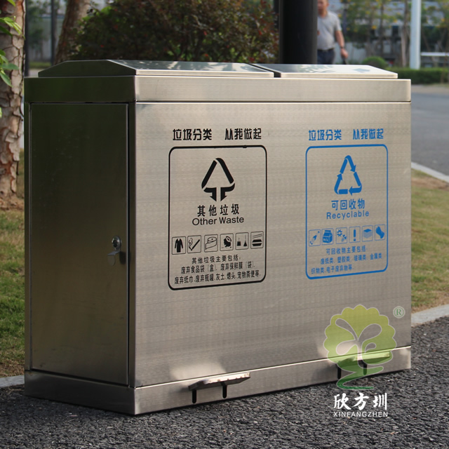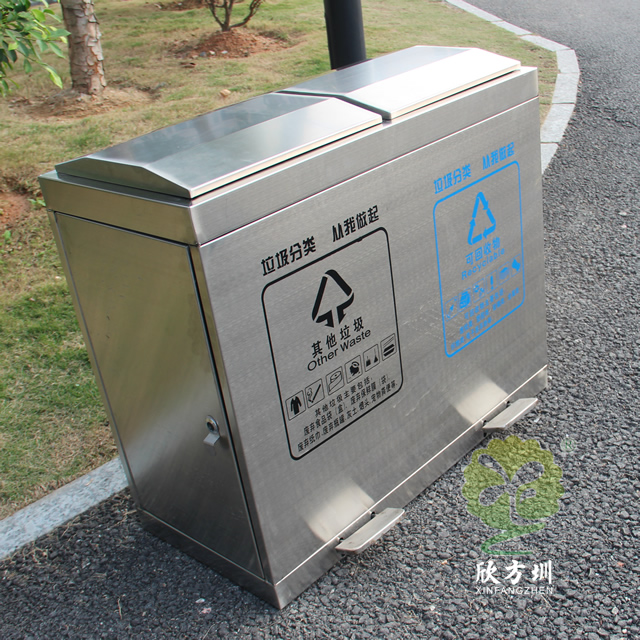 學(xué)校腳踏式不銹鋼分類垃圾箱采用優(yōu)質(zhì)的201#不銹鋼板制作而成,這款垃圾桶使用了其他垃圾、可回收垃圾兩個(gè)分類先進(jìn)靜音技術(shù)設(shè)計(jì),密封性很好可以防雨水進(jìn)入,有著良好的防止異味跑出,很適合室內(nèi)和戶外使用,腳踏式開蓋設(shè)計(jì)更加衛(wèi)生,側(cè)面兩邊可以使用三角鑰匙取出內(nèi)筒,支持定制絲印了垃圾分類標(biāo)識(shí)。