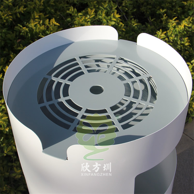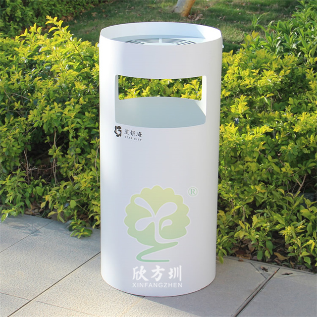 商場圓柱形加厚不銹鋼果皮箱采用了2.0mm厚201#不銹鋼板制造而成,雙面方形投口,加厚板材圓柱形設(shè)計,垃圾桶身象牙白噴塑上色,桶上方帶一個網(wǎng)格的滅煙盒,取出內(nèi)筒需要先拿出頂部網(wǎng)格和滅煙盒才能取出果皮箱的內(nèi)筒,投口左下方絲印了企業(yè)標(biāo)識,欣方圳工廠支持材質(zhì)規(guī)格顏色及外觀定制。