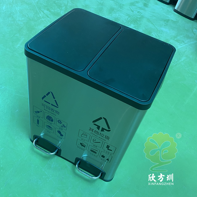 室內(nèi)腳踏式分類(lèi)不銹鋼垃圾桶圖片: