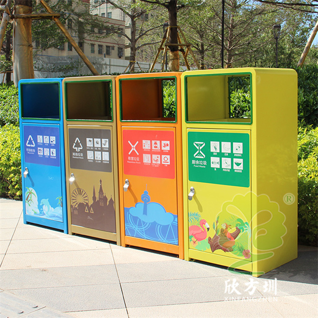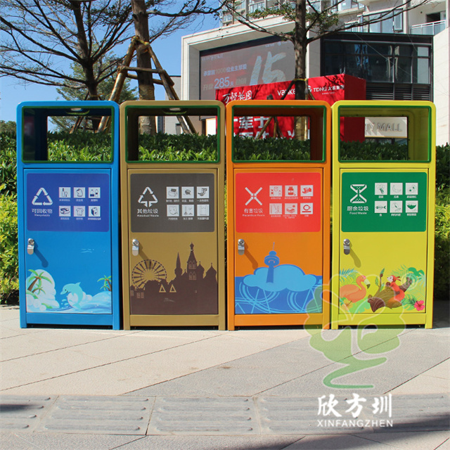 這款四色噴塑不銹鋼分類垃圾桶適合擺放在城市生活廣場(chǎng)、購(gòu)物廣場(chǎng)、旅游景區(qū)、文旅公園等場(chǎng)景使用,這款產(chǎn)品圖片是我們拉去廣場(chǎng)上拍攝的,是實(shí)物圖沒有經(jīng)過處理的,采用了方形組合式設(shè)計(jì),四色的噴塑效果,表面圖案可以經(jīng)過貼紙或者UV打印上去,可以印上文化歷史、發(fā)展歷程等,內(nèi)置玻璃鋼內(nèi)筒堅(jiān)固耐用不漏水。