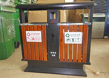 戶外小區(qū)雙分類鋼木垃圾桶鋼鐵部分