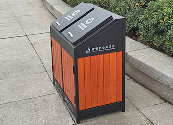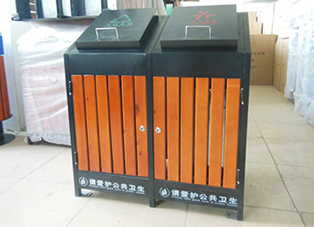 街道帶蓋分類鋼木垃圾箱鋼鐵部分