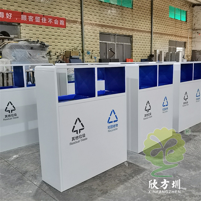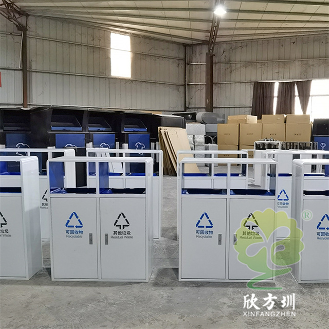戶外烤漆白色兩連體鍍鋅板分類垃圾箱采用了1.00mm厚的鍍鋅板制作而成,雙面投口方形兩連體分類設(shè)計簡潔大氣,兩面絲網(wǎng)印刷了其他垃圾和其他垃圾的最新國標(biāo)分類標(biāo)識,開門方式采用了磁吸方式推拉無需三角鑰匙, 我們廠家支持冷軋鋼板、不銹鋼、表面電鍍、烤漆、噴塑上色定制,每個城市都有每一個城市垃圾桶設(shè)計方案。