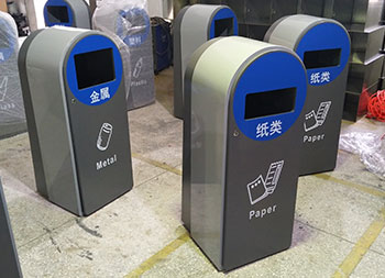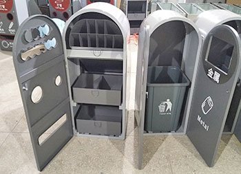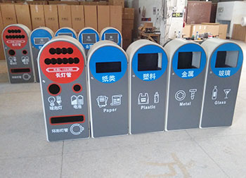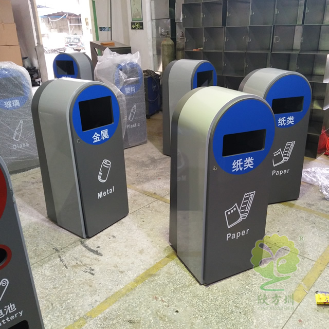 玻金塑紙鋼制分類垃圾資源回收箱采用冷軋鋼板制作而成,玻璃、金屬、塑料、紙質(zhì)加一個燈管桶五分類設(shè)計,五分類有害垃圾桶簡稱玻金塑紙,深圳小區(qū)指定的分類垃圾回收箱。