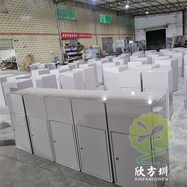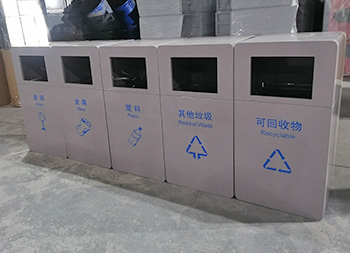 戶外公園組合式鍍鋅板分類垃圾桶整體1.0mm厚噴塑外筒,方形任意組合式多分類設(shè)計,可以選擇用不銹鋼板制作桶身,桶身表面噴涂噴塑了米白色,背后可使用三角鑰匙開始開門取出內(nèi)筒,內(nèi)筒鍍鋅板0.4mm厚,正面絲印了最新國標(biāo)分類標(biāo)識,有現(xiàn)成的網(wǎng)版可以免費絲印分類標(biāo)識。