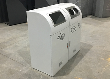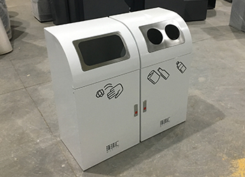 室內(nèi)冷軋鋼板分類環(huán)保果皮箱采用了優(yōu)質(zhì)的加厚的冷軋鋼板制造而成,雙桶組合式三分類白色噴塑設(shè)計(jì),是一款資源回收箱分別可以回收廢紙、易拉罐、玻璃瓶、塑料瓶,絲印了垃圾分類標(biāo)識和企業(yè)logo,正面拉手開門取出內(nèi)筒內(nèi)部帶磁鐵方便開關(guān)門,投口為方形和圓形金屬本色,這款垃圾桶簡潔設(shè)計(jì)高端上檔次。