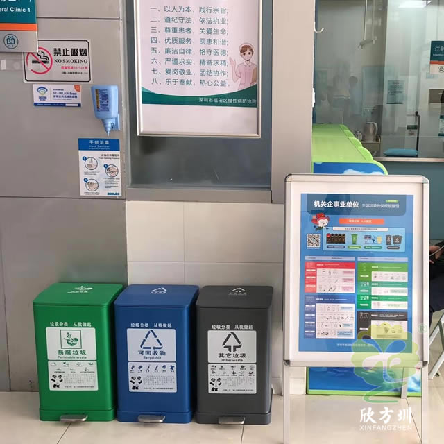 室內(nèi)鋼制腳踏式分類垃圾桶采用了優(yōu)質(zhì)的冷軋鋼板制作而成,四色紅色、綠色、藍(lán)色、灰色腳踏式方形設(shè)計(jì),顏色采用了噴塑上色,正面絲印了分類標(biāo)識(shí)可以任意組合,適合擺放在室內(nèi)的走廊、市政機(jī)關(guān)單位、醫(yī)院、學(xué)校、酒店等等進(jìn)行垃圾分類,內(nèi)筒采用了鍍鋅板制作。