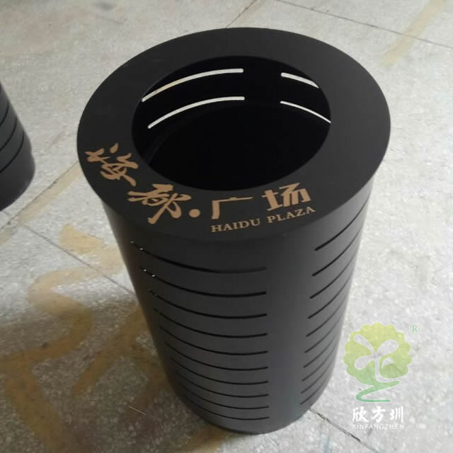 室外廣場圓柱形鋼制垃圾桶采用優(yōu)質(zhì)的冷軋鋼板裁剪焊接制作而成,這款板材加厚黑色垃圾桶使用了鏤空戶外高溫烤漆圓柱形立式直投口設(shè)計,直徑450mm高度800mm,桶身頂部絲印了企業(yè)名稱及l(fā)ogo,可以按照要求定制合適戶外果皮箱。