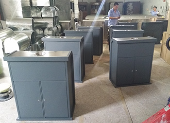 戶外市政道路兩分類鋼板垃圾箱廣泛適用于戶外垃圾分類收集,鋼制垃圾桶采用優(yōu)質(zhì)的冷軋鋼板制作色澤亮麗美觀,內(nèi)筒標配為鍍鋅板可以另選塑料、玻璃鋼、不銹鋼、或者塑料內(nèi)桶等,冷軋鋼并具有防潮、防火、防腐、防蛀、防銹、耐高溫、易清理不脫落,不起層使用壽命長等特點。